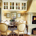 The casual elegance in the Traditional Home magazine spread (left) oozes refinement, while designer Patti Kommel's European-inspired banquette (right) exhibits a rich, textural refinement in a small space that she says "feels like a New York apartment."