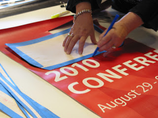 What does your city do with the used street banners left over from conventions, events and city celebrations? With a city that is a major convention and tourist destination, San Antonio's creative community has found a way to upcycle the flood of used, vinyl tourism banners that grace downtown streetposts. There is a new art project that is turning tons of the vinyl advertising messages into shopper bags, aprons and other resourceful items for a good cause. What was once discarded as trash is now a valuable commodity aimed at funding the restoration of a local icon.