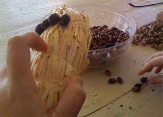 Gather and Bake. Begin by gathering acorns. Bring inside and place on a cookie sheet. Bake them in a 350 degree oven for 30 minutes. This will insure that any little burrowed creatures are baked to oblivion.