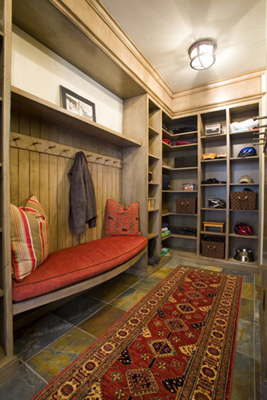 Mudrooms can be minimalist with just the basics like the one (above left) created by Miles Redd, or can be an extension of a home's decor as in the personalized space designed by Kalu Interiors (above right).