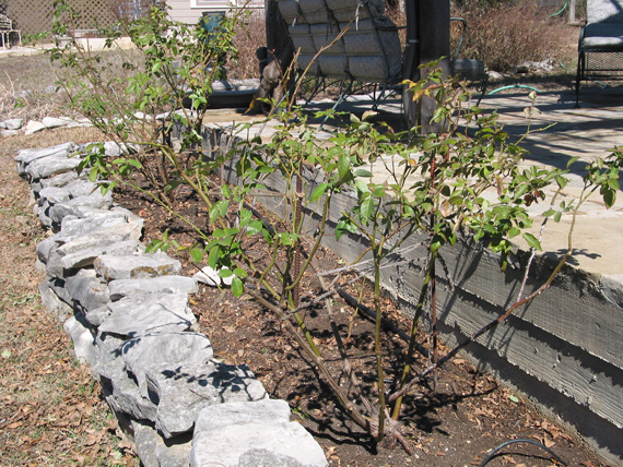 By mid-March these bushes will be filled with leaves and new buds just waiting to bloom. The pergola next to the rose bed will be covered with wisteria blossoms, and the bees and I will be intoxicated by the sight and smell emanating from this little spot on our property.