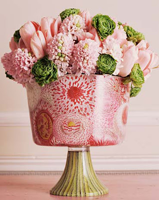 You know, I have a vintage loving cup with the same tarnished finish as the vase above. Maybe I'll add some roses and bells along with my cherished ranunculus to create a romantic St. Valentine's Day feel like the mood set in this photo via Floral Verde.