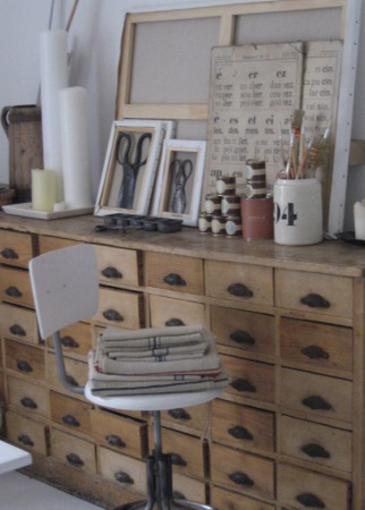 Old card catalog cabinets are ready to store all sorts of knick-knacks. Image from The Inside Story.