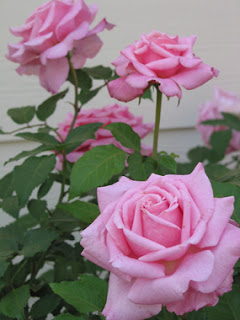 Hubby's green thumb is evident in his rose garden where Belinda's Dream and Valentine roses (shown below) are the showstoppers this week.