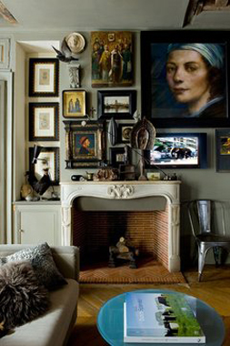 The giant scale of the portrait above (via The Paris Apartment) makes me weak in the knees just looking at the image. If your ceiling height can't handle a 20' canvas, yet you are overcome with desire for unique artwork, check out the 6' - 7' tall originals from Bobo Intriguing Objects, like those below.
