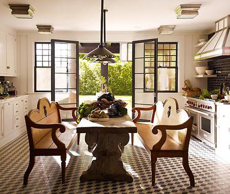 I just want to sit at this table and snap beans! I can see generations of a family appreciating the beauty of this table and its benches while preparing heirloom recipes. This photo from Old Sweetwater Cottage places the table in the heart of the kitchen.