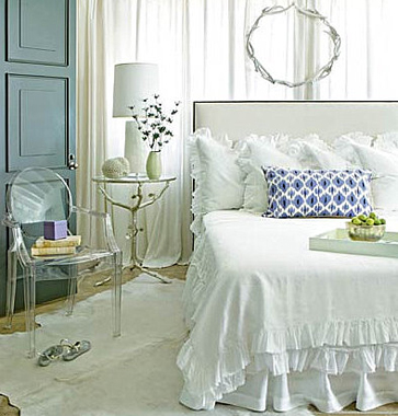 Translating those song lyrics into soothing spaces is easy when using blue decor to create a relaxing retreat in any room. But, bedrooms always come to mind when I think of introducing shades of the sky and sea.
